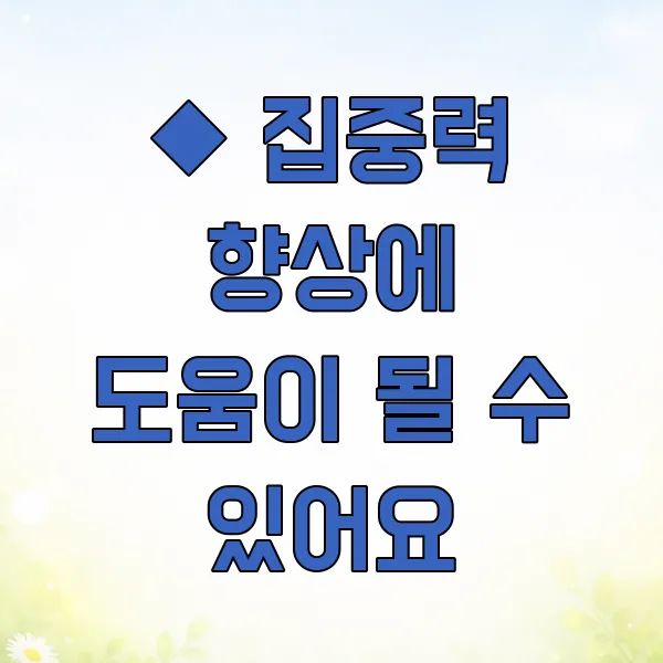 ◆ 집중력 향상에 도움이 될 수 있어요