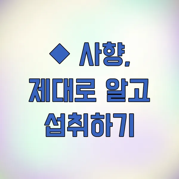 임산부나 특정 질환을 앓고 있는 분들은 사향 섭취 전 반드시 전문가와 상담 해야 해요. 과다 섭취는 부작용을 일으킬 수 있으므로 권장량을 지키는 것이 중요해요. 또한, 사향은 체질에 따라 반응이 다를 수 있으므로 이상 증상이 나타나면 즉시 섭취를 중단하고 의사와 상의해야 합니다.